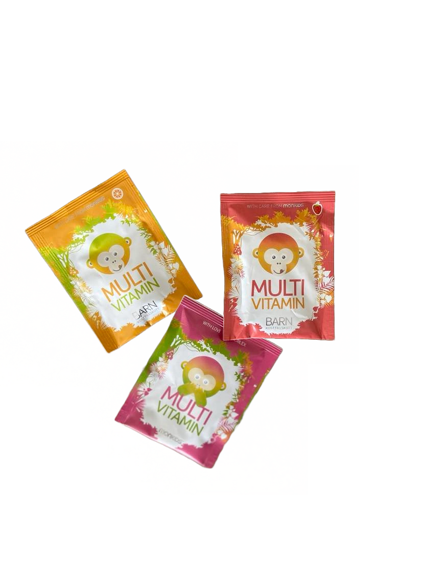Det finns perioder då barn petar i maten, inte får i sig tillräckligt med D-vitamin och aldrig äter grönsaker. Multivitamin från Monkids säkerställer ett jämnt intag av vitaminer som ett komplement till en allsidig kost.