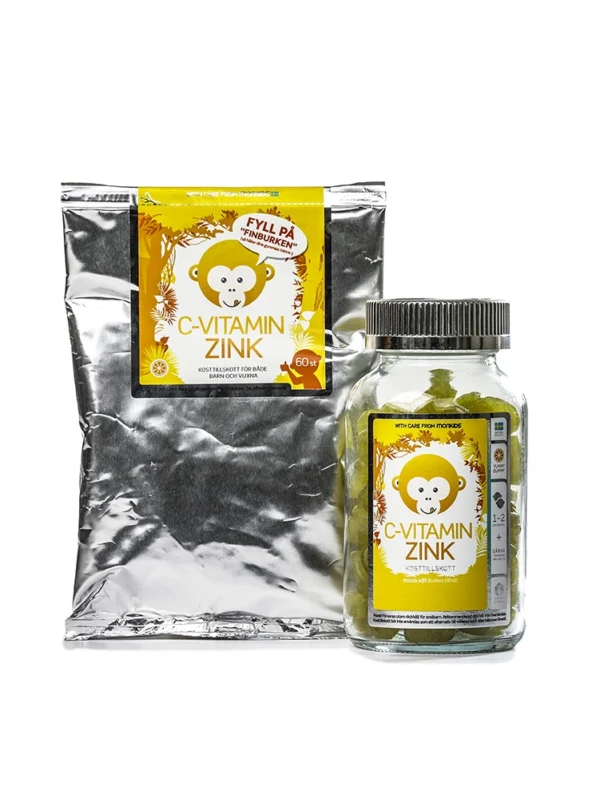Visste du att C-vitamin och zink bidrar till immunsystemets normala funktion? Många väljer att ge sitt barn denna gummy med C-vitamin och zink under inomhussäsongen när många barn ses på små ytor. Den är vegansk, tillverkas i Sverige och har en naturlig fruktsmak Från 3 år. 60 gummies/refillpåse.